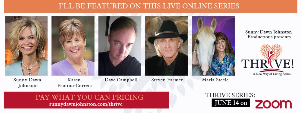 Thrive: A New Way of Living is Sunny’s brand new interactive monthly series that connects you, from the comfort of your own home, directly to me, Sunny Dawn Johnston, and a dynamic panel of renowned experts in the fields of physical health, psychology, spirituality, personal growth and transformation, mental and emotional wellness, and holistic and alternative healthcare.